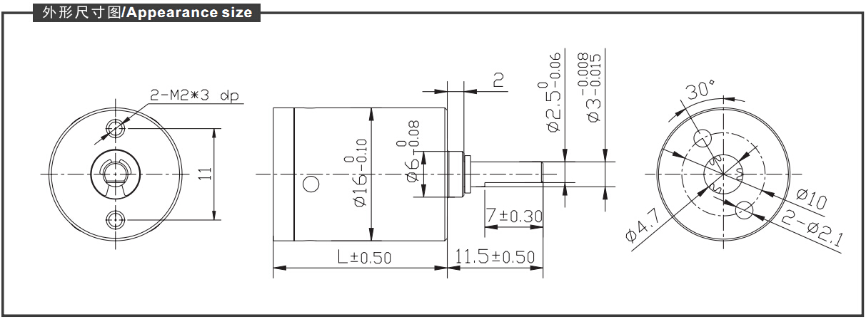 - 1、輸出軸直徑為Φ3.0mm,長(zhǎng)度可根據(jù)客戶要求定制