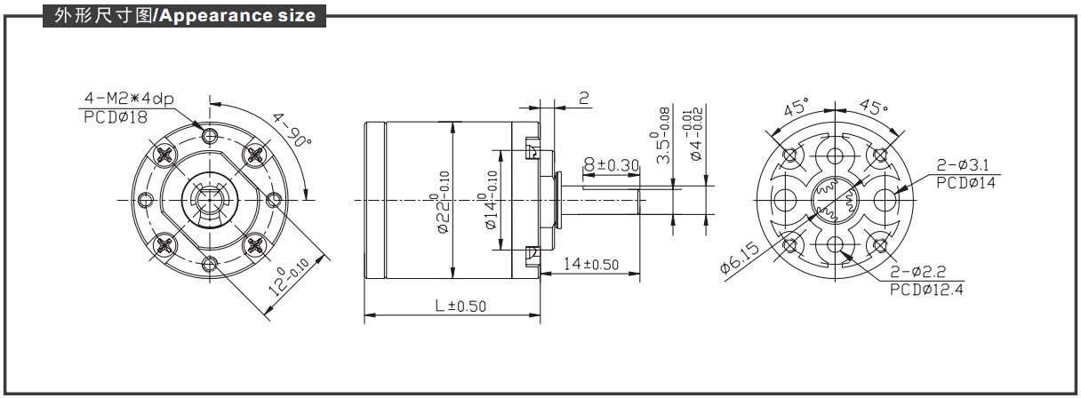 輸出軸直徑為Φ4.0mm,長(zhǎng)度可根據(jù)客戶要求定制