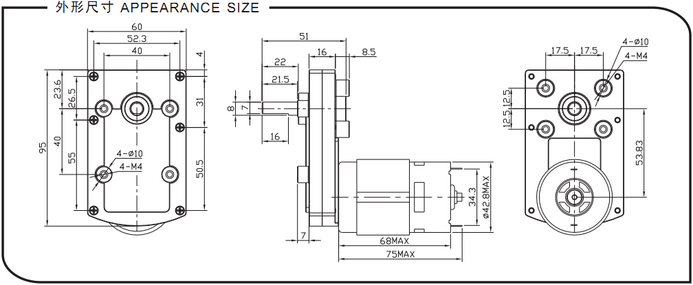 齒輪箱尺寸: 60mmx95mmxH23mm