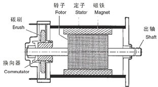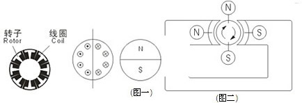 所以電機(jī)由固定的永久磁鐵(定子)一個(gè)轉(zhuǎn)動(dòng)的磁鐵(轉(zhuǎn)子)和金屬外殼組成,形成電機(jī)體。(圖一) 根據(jù)異極相吸,(圖二) 同極相斥的原理,扭矩作用到轉(zhuǎn)子上使其轉(zhuǎn)動(dòng)。當(dāng)轉(zhuǎn)子磁極的軸向與定子磁極的軸向垂直正交時(shí),扭矩最大,一旦轉(zhuǎn)子開始轉(zhuǎn)動(dòng),固定碳刷輪流與換向器保持接觸或中斷接觸。轉(zhuǎn)子線圈按轉(zhuǎn)子轉(zhuǎn)動(dòng)的方式通電和斷電,轉(zhuǎn)子新產(chǎn)生的磁極的軸向,總是和定子磁極的軸向垂直正交,因?yàn)檫@是由換向器決定的。無論轉(zhuǎn)子在什么位置,都按固定方式運(yùn)轉(zhuǎn)。通過增加換向器的數(shù)目來減少合成扭矩的脈動(dòng),可使轉(zhuǎn)子更加平滑地轉(zhuǎn)動(dòng)。反接電機(jī)的電源,轉(zhuǎn)子線圈中電流產(chǎn)生的磁極N極和S極都將反轉(zhuǎn),作用于轉(zhuǎn)子上的扭矩也反向,從而電機(jī)改變轉(zhuǎn)動(dòng)方向,根據(jù)其固有特性,DC電機(jī)是一種可反向轉(zhuǎn)動(dòng)的電機(jī)。